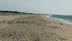 During times of severe weather and extremely high tides, much of the beach may be eroded. The more energy a wave has, the more material it is able to carry away from the beach to bars out in the ocean. The sand is continually carried off of the beach by higher energy waves and gradually brought back by regular wave action. This shift of sand to and from the beach occurs continually, thus altering the shape of the beach often.