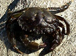 A medium-sized crustacean distinguished from other crabs by the five points around the perimeter of its shell. These crabs are generally green but the color may vary. This is the most common crab found in New England even though it is not a native species. |