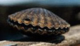 This highly mobile, edible bivalve has circular ribbed shells that are gray to reddish brown in color. They swim by clapping their shells together. Bay scallops have 30-40 blue eyes that are located along the edge of the mantle. They rarely live longer than 3 years and are no longer found abundantly in RI. |