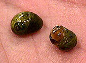These gastropods are small, only 3/8- 3/4 in. (0.95-1.9 cm) high and wide and tend to be yellow, orange, or even dark brown. They are found along the western Atlantic coast from Labrador to New Jersey on intertidal rocks and among seaweed. They are also found along the eastern Atlantic coast of Europe. |