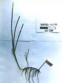 Eelgrass is a true flowering plant that grows submerged in quiet water like that found in coastal lagoons. Eelgrass serves as a sediment trap, dampers the current to reduce water motion, acts as a nursery for many fish species, and is a food source for geese and ducks. |