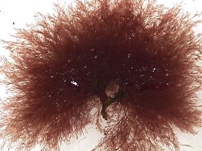 This is the most common genus of red algae (Rhodophyta). Found year round in tide pools, shallow coves, and eel grass beds, it can grow up to 30 cm (11.8 in.) in length. Its thallus has a bushy appearance.