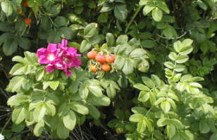 the flower and is called a rose hip. These shrubs grow in the dune areas