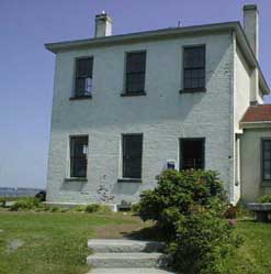 The first place we visit is the Beavertail Lighthouse Museum. This is the site of America's third oldest lighthouse. The first lighthouse was built in 1749, but was burned down by soldiers during the Revolutionary War. The building we are visiting today was built in 1898. Inside the museum there are old photographs and paintings of all different lighthouses in Rhode Island, some stuffed fish, and a glass Fresnel lens that was used to light the lighthouse.