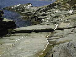 In some of the rocks we can see a vein of milky white mineral called quartz. Ranger Bob said that people have even found fossils of trilobites, ancient animals, in some of the rocks.