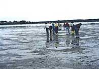 One of us should run ahead and ask those people in the distance what they are doing with those long handled poles. Okay?Did you find out that they are digging for hard shelled clams which are called, quahogs in Rhode Island? Their bucket is full of small clams, known in Rhode Island as "cherrystones". They are a very popular dish and can be cooked, breaded, and stuffed. The cooked and stuffed clam is known here as a "stuffie". Clam chowder is also made from these popular bivalves. Is anyone else getting hungry?
