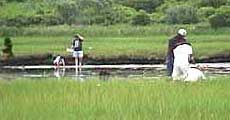 Can you hear your boots sloshing in the shallow water just above the mud? Who are those other people out there? They are dressed much like we are, but are they on a field trip also? What else would someone be doing at low tide in a New England salt marsh?