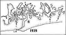 Natural breachway was evident. By 1752 sediment had filled in and boats could not travel through the breachway.1904 -1910