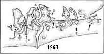 Hurricane Carol washed houses, barns, and boats into the water and increased transport of sediment through the breachway.1962